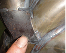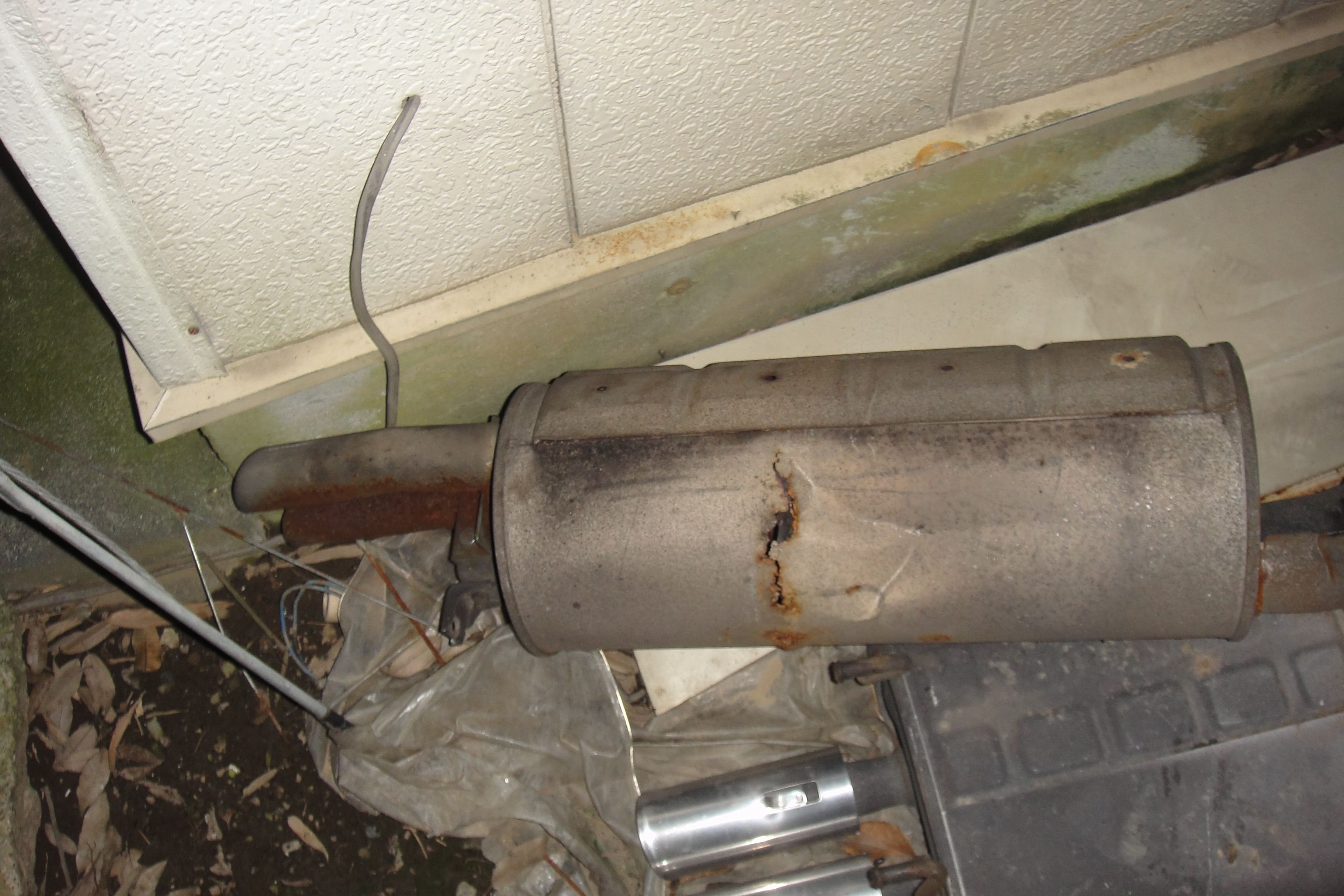 右の写真は、大きな穴のあいてしまったマフラーを鉄板を溶接し修理したものです。