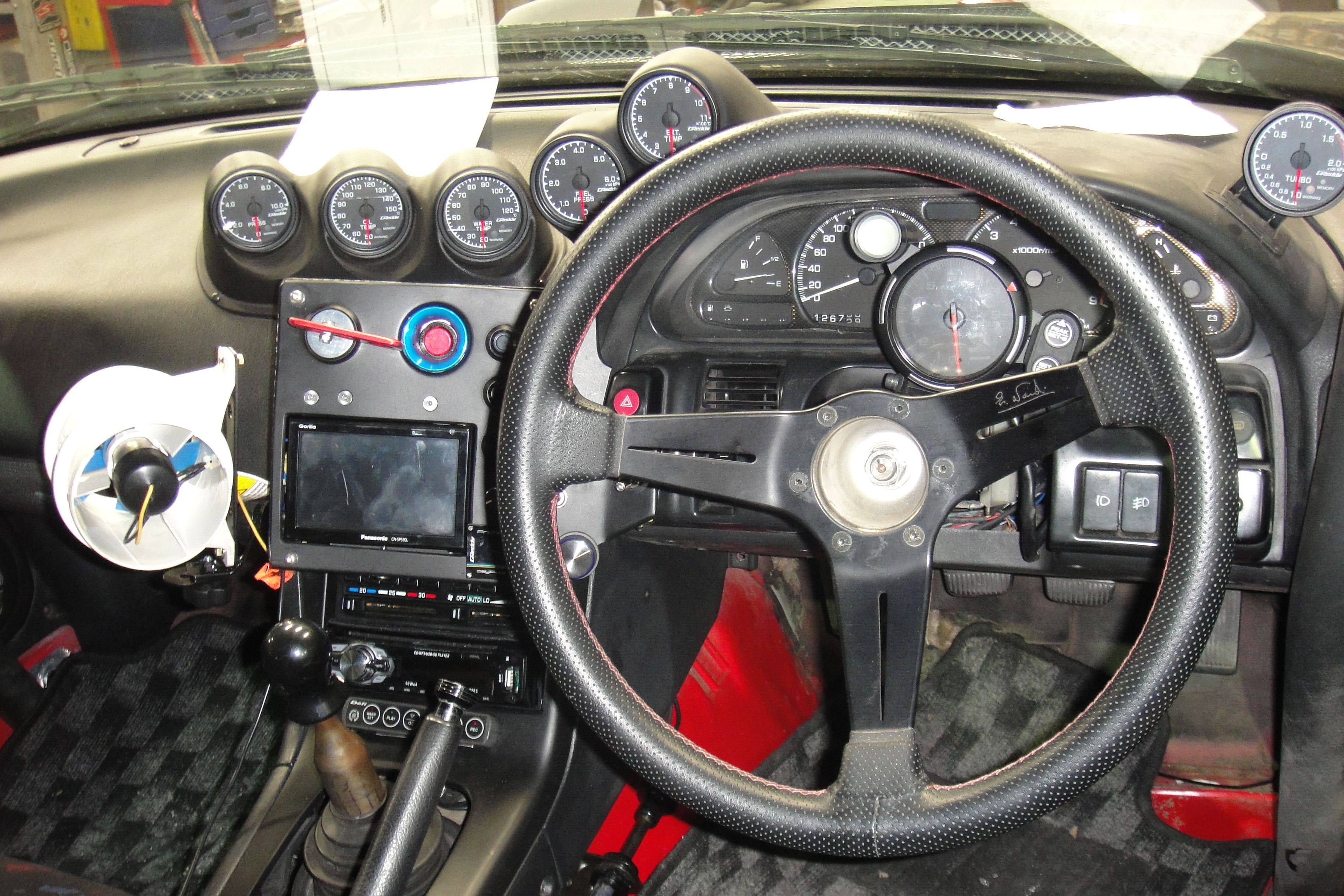 テレビでレースを見ていたオーナーさん、レース車両にはウィンカーレバーもライトレバーもハンドル周りに何もついていないのを見て、どうしても同じにしたい!ということでやってみました。